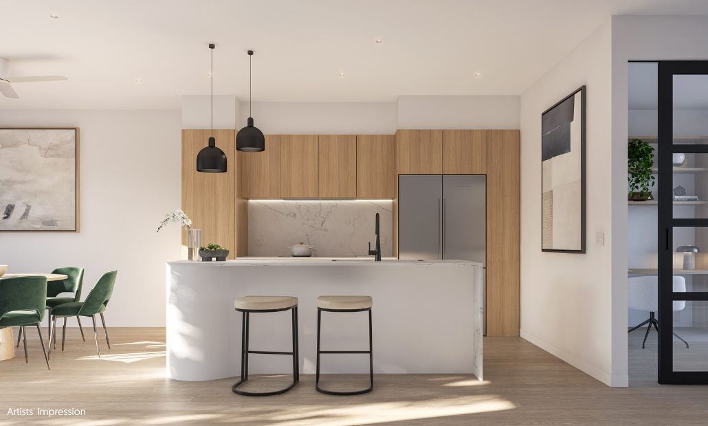 ^Image is indicative only. Benchtop material: On 13 December 2023 the Commonwealth and State WHS Ministers announced an intention to ban all engineered stone nationally with effect from 1 July 2024. Alternatives to engineered stone which meet Mirvac’s required quality and design standards are currently being investigated. As such the benchtop material has yet to be determined and once determined will be different from that shown in the render.