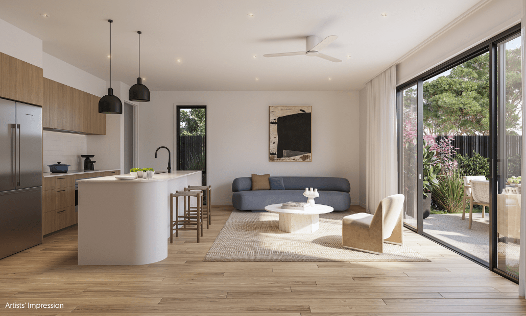 ^Image is indicative only. Benchtop material: On 13 December 2023 the Commonwealth and State WHS Ministers announced an intention to ban all engineered stone nationally with effect from 1 July 2024. Alternatives to engineered stone which meet Mirvac’s required quality and design standards are currently being investigated. As such the benchtop material has yet to be determined and once determined will be different from that shown in the render.